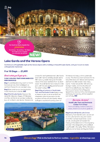 Here’s what you’ll get up to... a beautiful and quintessential Lake Garda Sirmione and enjoy a short peninsula