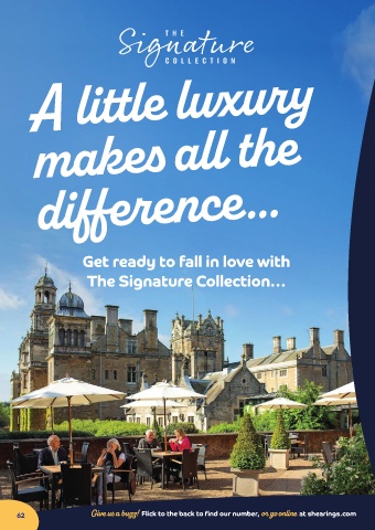 A little luxury makes all the difference… Get ready to fall in love with The Signature Collection… 62 Give us a buzz! Flick to the back to find our number, or go online at shearings.com